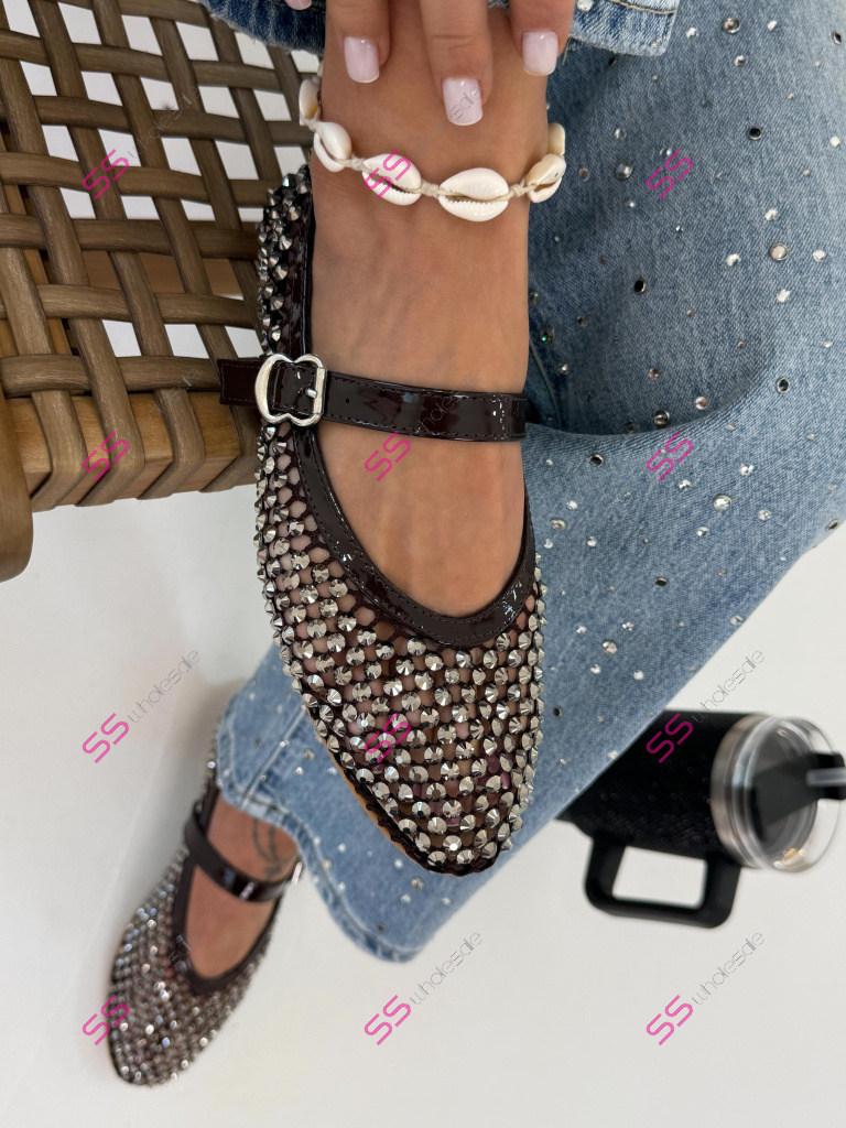 Sieťované hnedé balerínky zdobené kamienkami KALIN