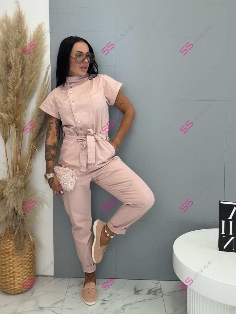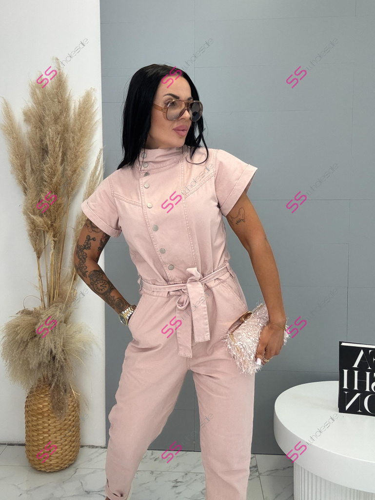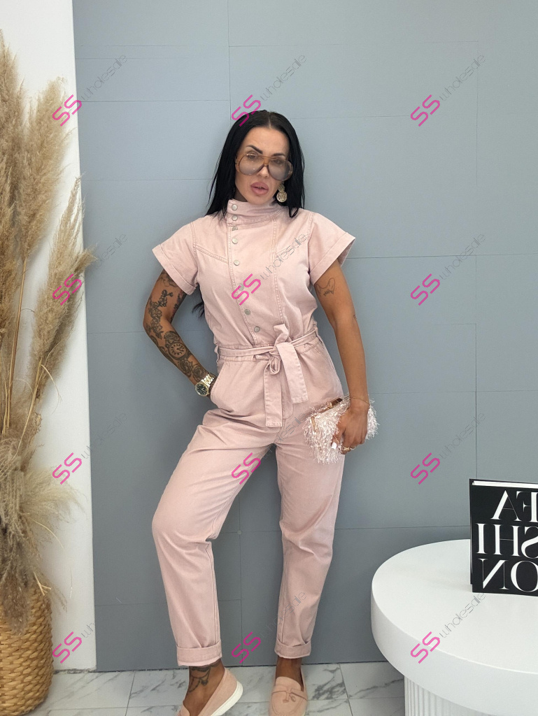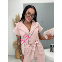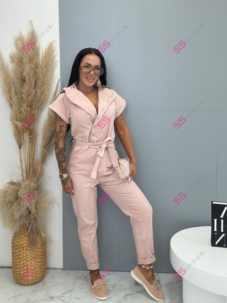 Overal s krátkym rukávom a golierom je štýlový a praktický kúsok do každého šatníka. Nie je vyrobený z elastického materiálu, no napriek tomu ponúka pohodlné nosenie. Zapínanie na strieborné patentky uľahčuje obliekanie a zároveň dodáva moderný vzhľad. Golier je možné vyhrnúť, čím si môžete prispôsobiť štýl podľa príležitosti. Trendová ružová farba pôsobí sviežo a výrazne. Model dopĺňa opasok, ktorý zvýrazní pás a vytvorí lichotivú siluetu. Overal má dve vrecká vpredu aj dve vzadu, čo zvyšuje jeho praktickosť. Je ideálny na každodenné nosenie aj na voľný čas.